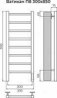 0% Нержавеющая сталь Ватикан П8 300х850 Электро (quick touch) Полотенцесушитель TERMINUS 0% 16 650 руб. Цвет: Тип полотенцесушителя Электрический Высота (мм) 850 Ширина (мм) 330 Межосевое расстояние (мм) 300 Цвет Нержавеющая сталь Артикул 4670078553430 Гарантия 5 лет